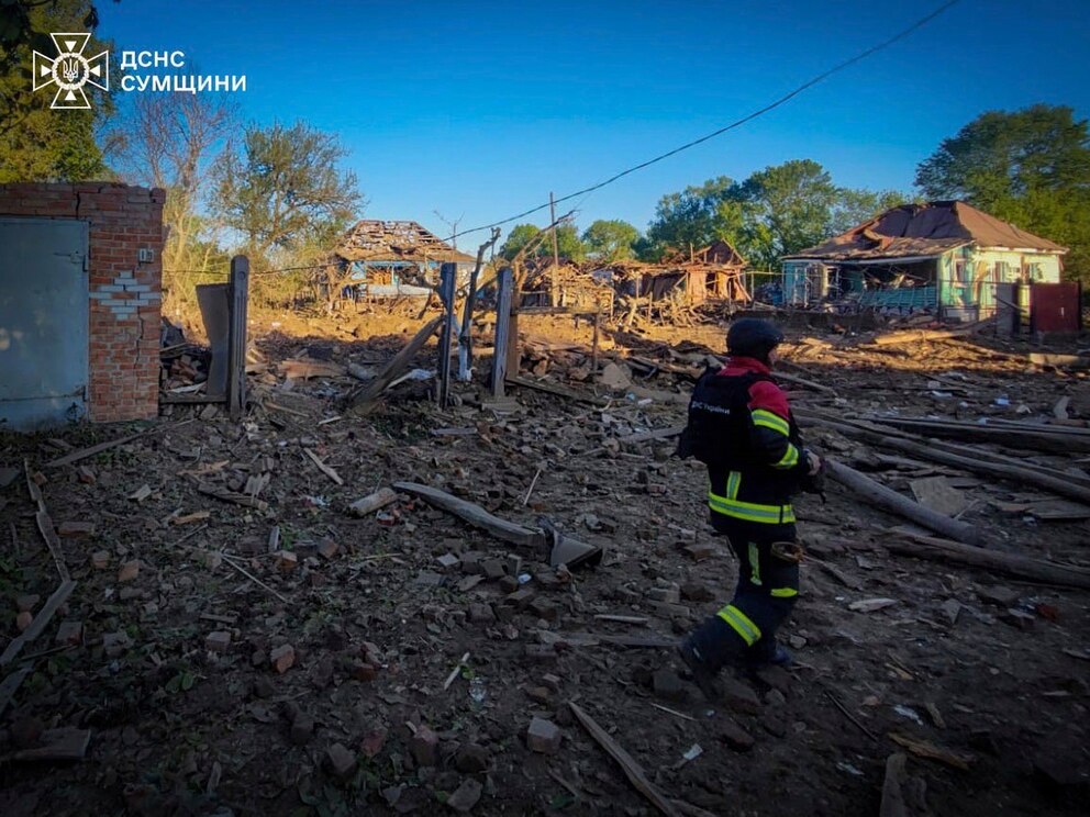 Una bomba cayó en una zona residencial cerca de Bilopilia, un pueblo cercano a la frontera con la región rusa de Kursk, según los servicios de emergencia.