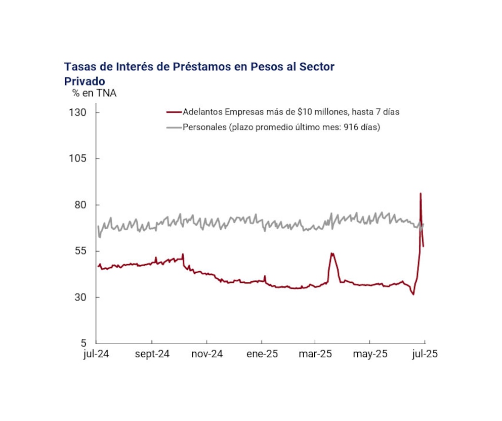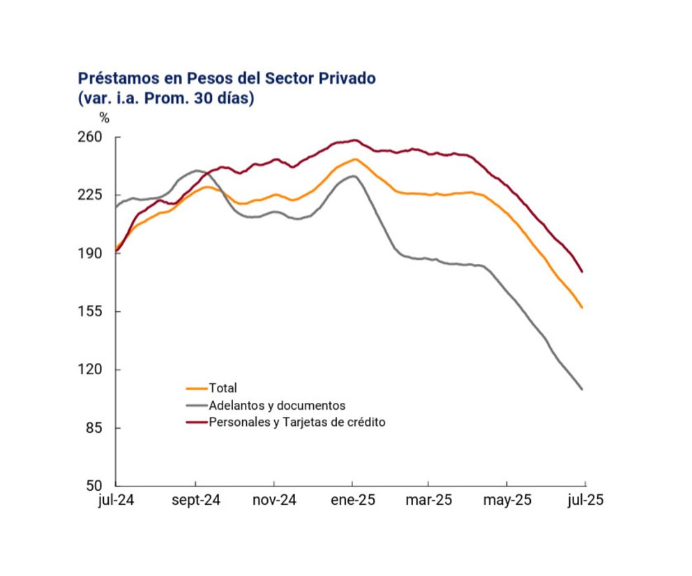 Los datos oficiales publicados por el BCRA sobre el nivel de financiamiento de julio apuntan en esa dirección. Hasta el día 23, el crédito al sector privado en promedio creció un 1,5%, con una inflación que se proyecta algo superior para el mes en curso.